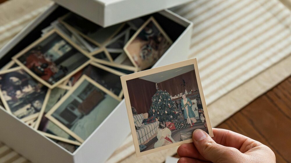 Creating a memory box with photos and keepsakes